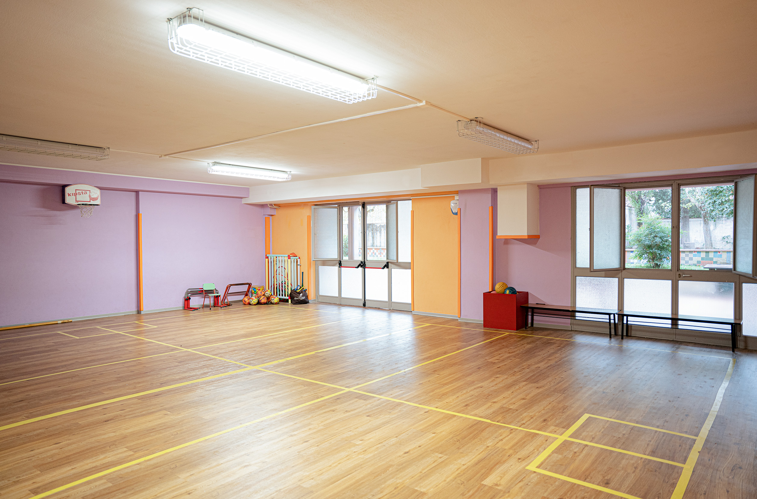 A noi bambini piace molto la lezione di educazione motoria e questa è la nostra palestra!